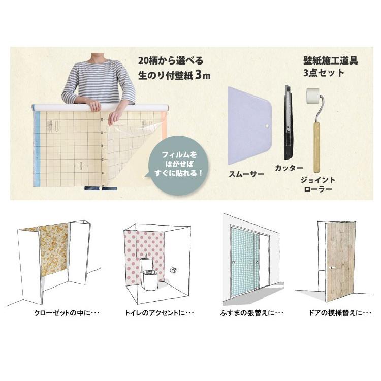 生のり付き 壁紙 お試し アクセント クロス 初心者セット 壁紙3m 施工道具3点セット 貼り方マニュアル付き ナチュラル 北欧 レトロ ガーリー 壁紙屋本舗 Paypayモール店 通販 Paypayモール